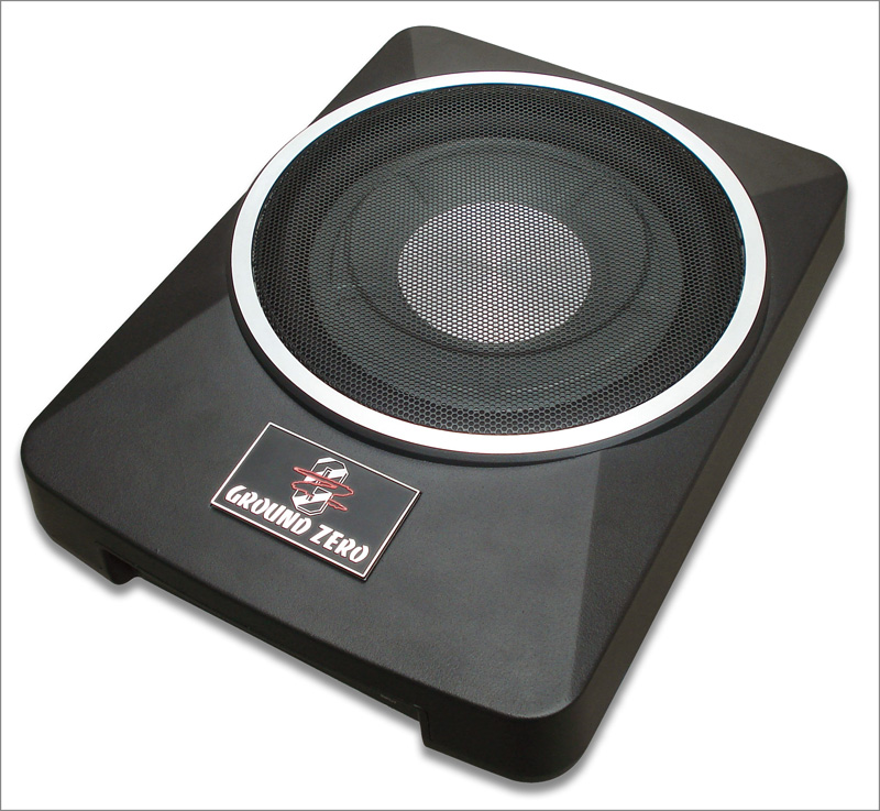 - 10" aktiv bass med kabinett av sortlakkert massiv aluminium