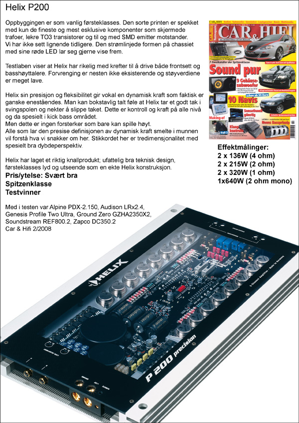 - RMS Effekt @13,8V 4Ohm: 2 x 130W